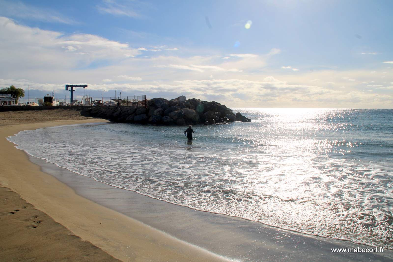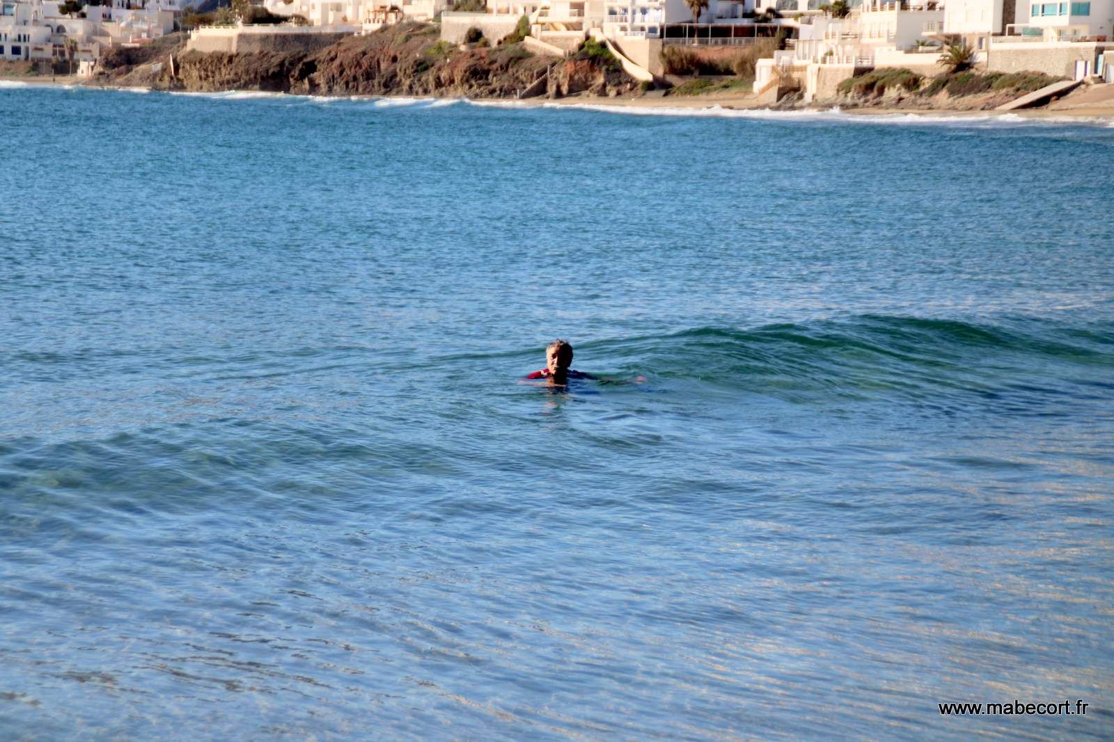 Jeudi 16 Janvier. Nous allons faire quelques courses au Suma local. Nous y achetons du pain et surtout une superbe côte de bœuf maturée à 21 €/kg. Dés notre retour au CC j'accompagne Marie à la plage. Il n'y a toujours personne dans l'eau où sur le sable.