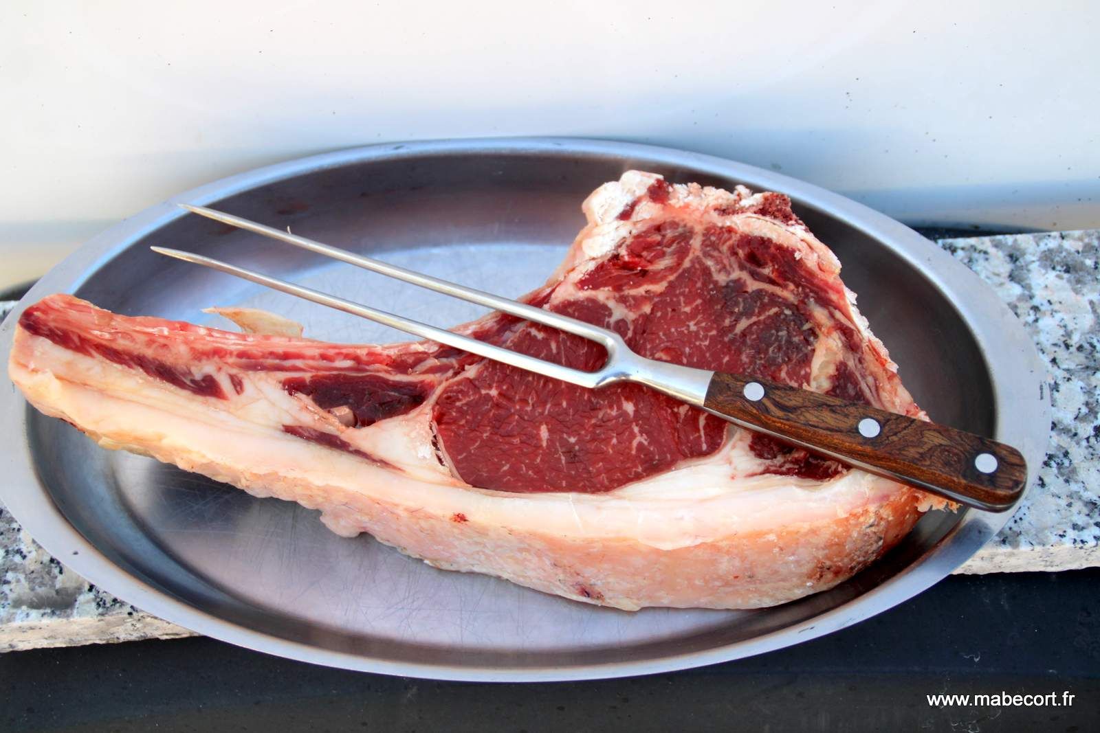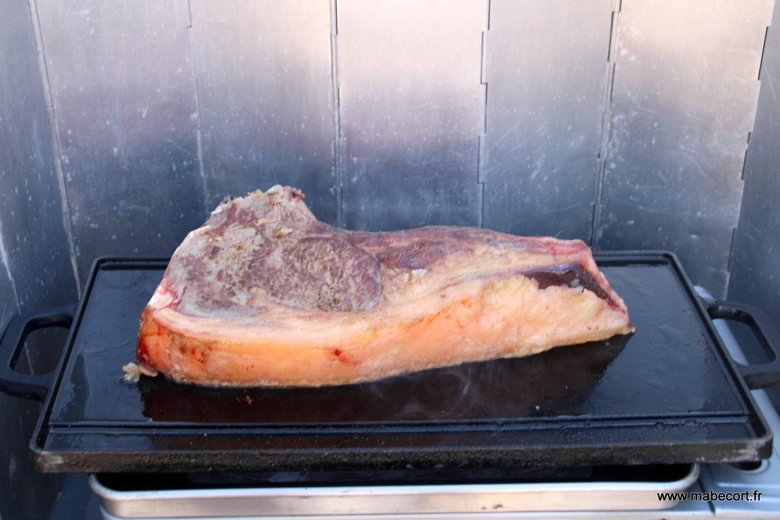 Au bout de 5 minutes elle revient. Il y aurait encore un courant sous-marin qui tire vers le large. Elle me dit qu'elle sentait ses pieds partir tout seul et préfère s'abstenir de se baigner. Nous revenons de bonne heure au CC, ce qui me permet de préparer tranquillement le repas de midi. Une petite côte de bœuf de 1,6 kg.