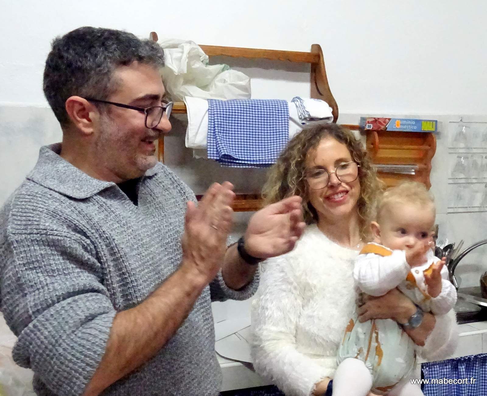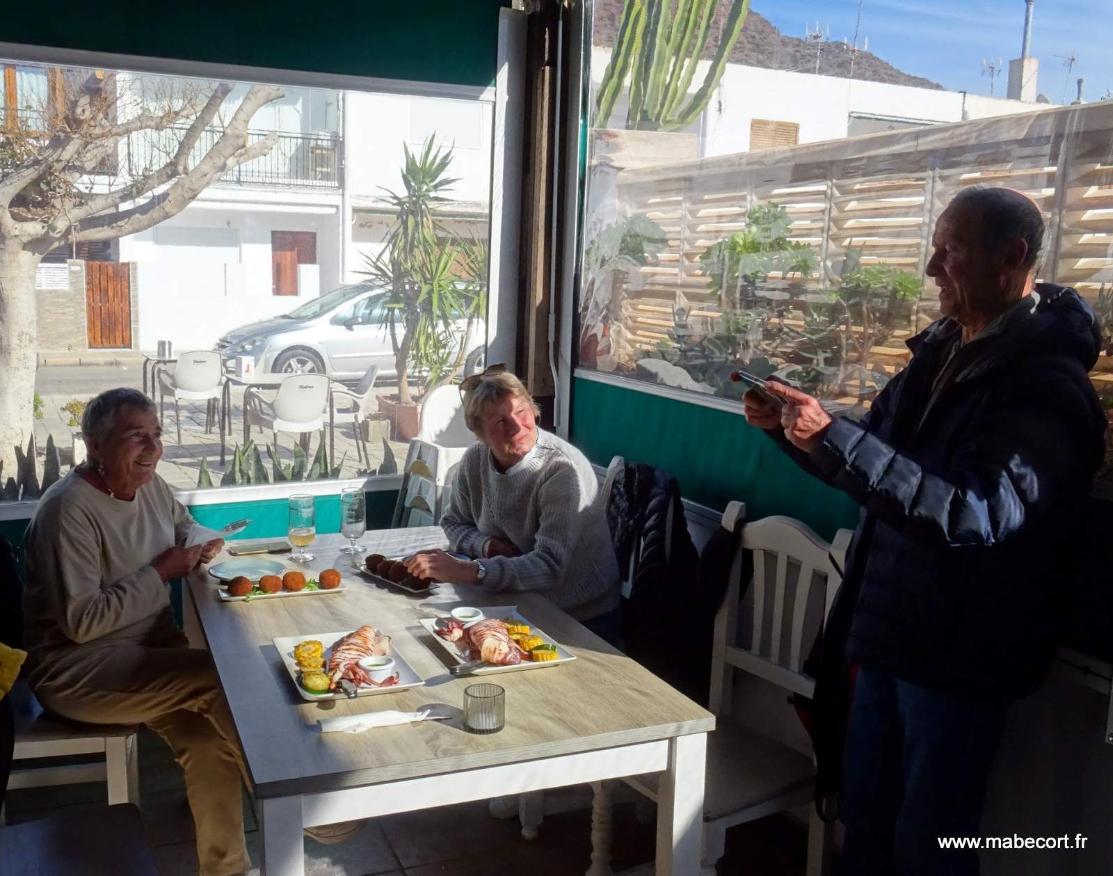 Dimanche 19 Janvier. De bonne heure, avec la polo nous partons jusqu'au marché de El Alquian. Nous faisons nos courses, fèves, oranges, avocats, pommes et tomates et revenons à San José. Nous n'avons pas trainé car nous sommes invités pour midi (14 h 00) à Campohermoso pour le premier anniversaire du petit Nico. Marie se prépare et moi je reste en survêtement et claquette à cause de ma brulure. Nico est le fils de Victor et Laura et nous étions descendu à Almeria pour leur mariage il y a trois ans, et nous étions là à sa naissance l'année dernière. Pour cet anniversaire nous n'étions que .....24.