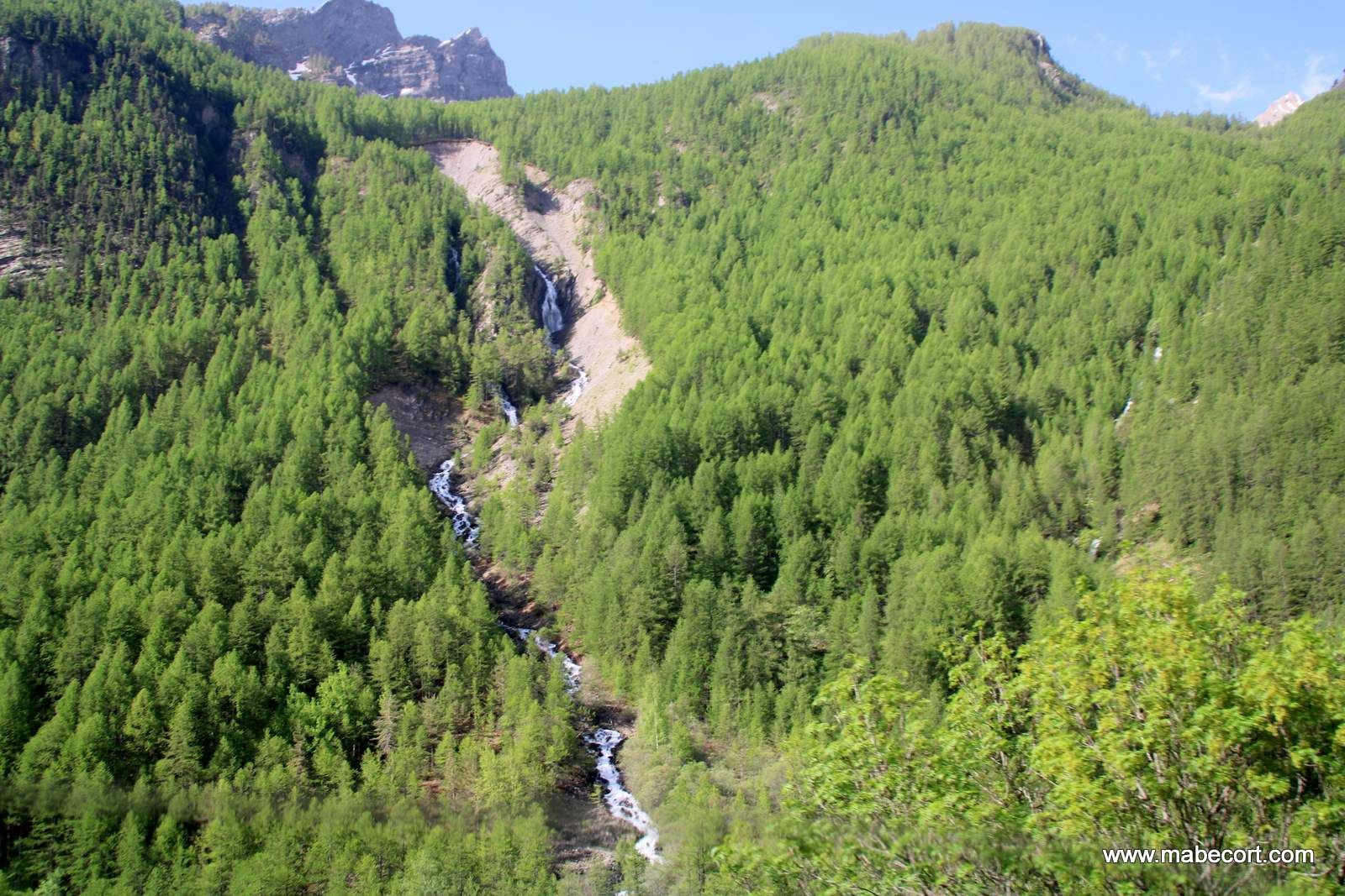 Dimanche 01 Juin. Après une nuit au calme et dans le noir complet, nous commençons la journée par aller faire quelques achats à l'Intermarché du village. A 09 h 00 nous quittons Barcelonnette en longeant une belle rivière.