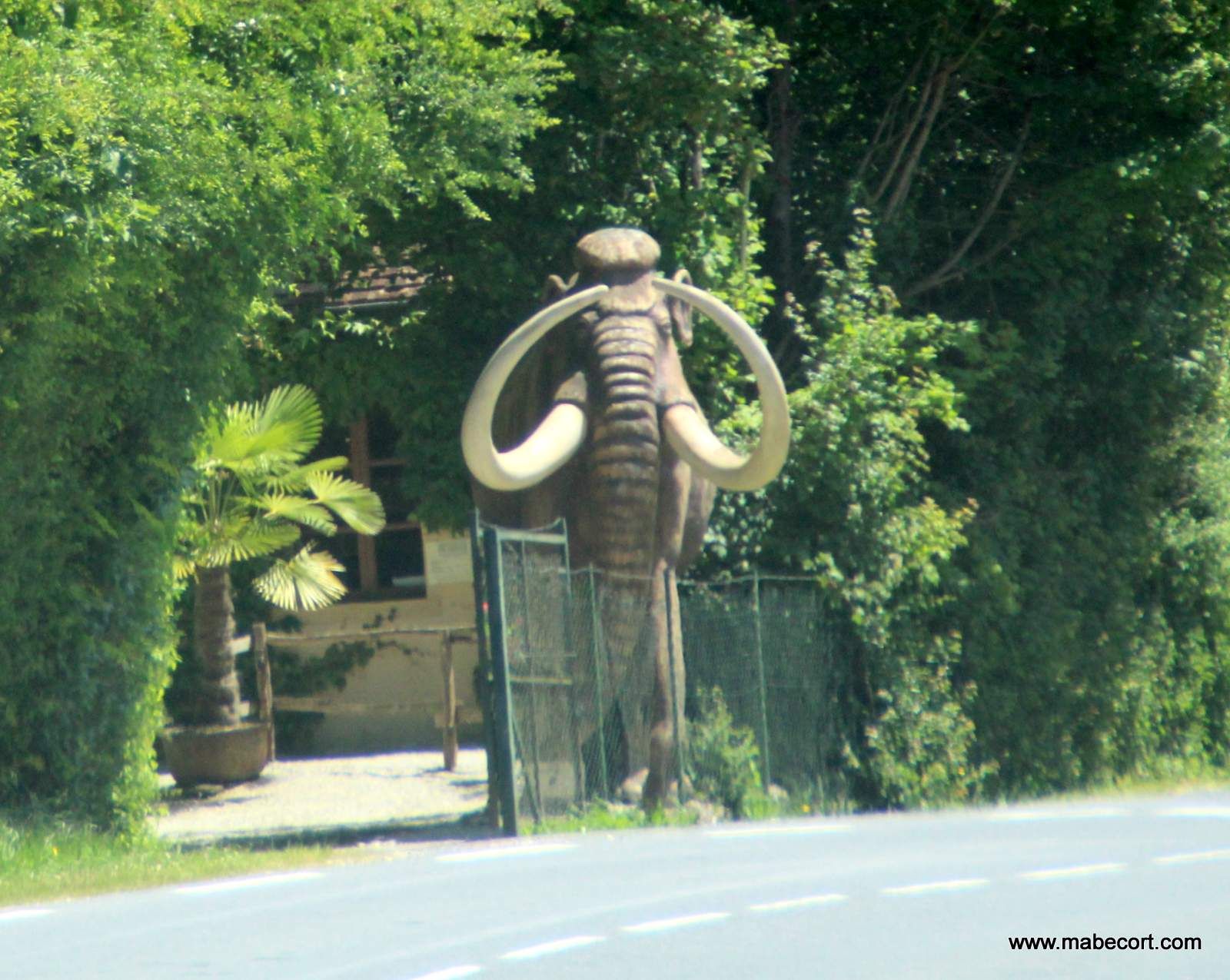 Jeudi 29 Mai. A 09 h 00 nous quittons ce petit village sous un ciel magnifique. Nous passons toujours par des routes secondaires, mais nous y trouvons quand même des rond points avec des décos spécifiques à la région.