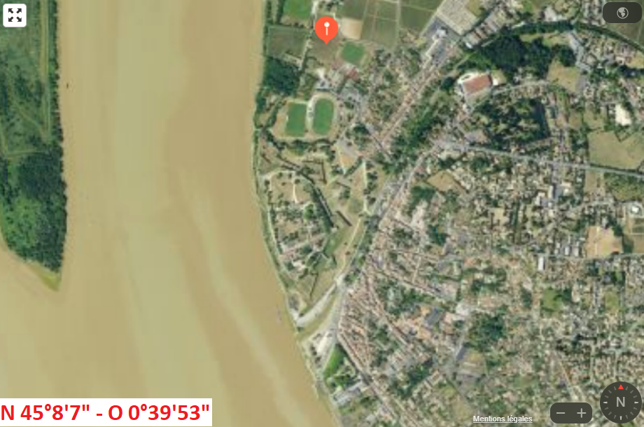 A 10 h 00 nous arrivons à Blaye (33) notre étape du jour. Le ciel est toujours très chargé quand nous nous posons sur une aire de CC payant, neuve, immense, mais par contre pas onéreuse. 6 € avec eau et électricité à volonté pour 24 heures.