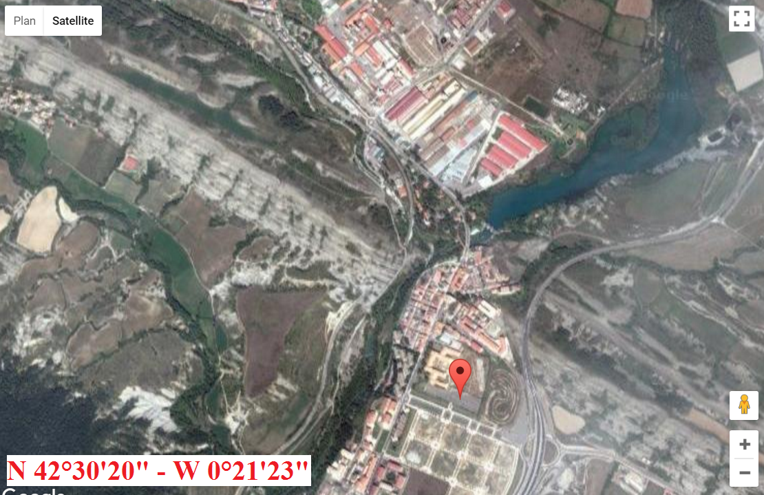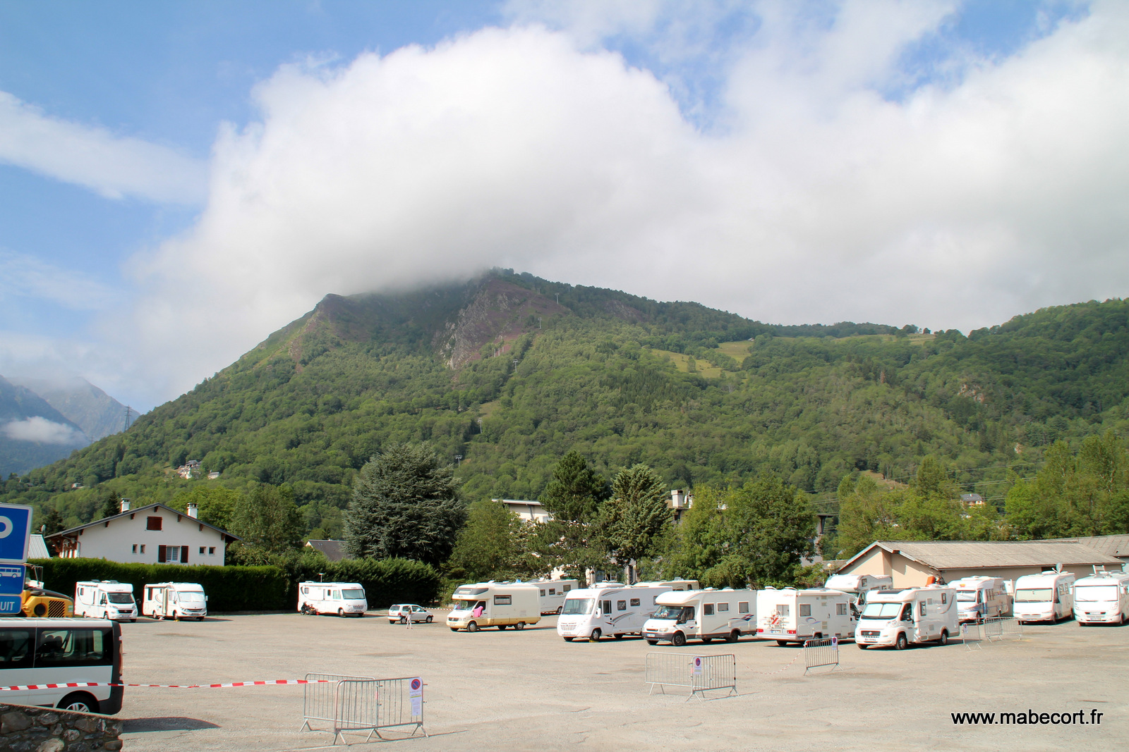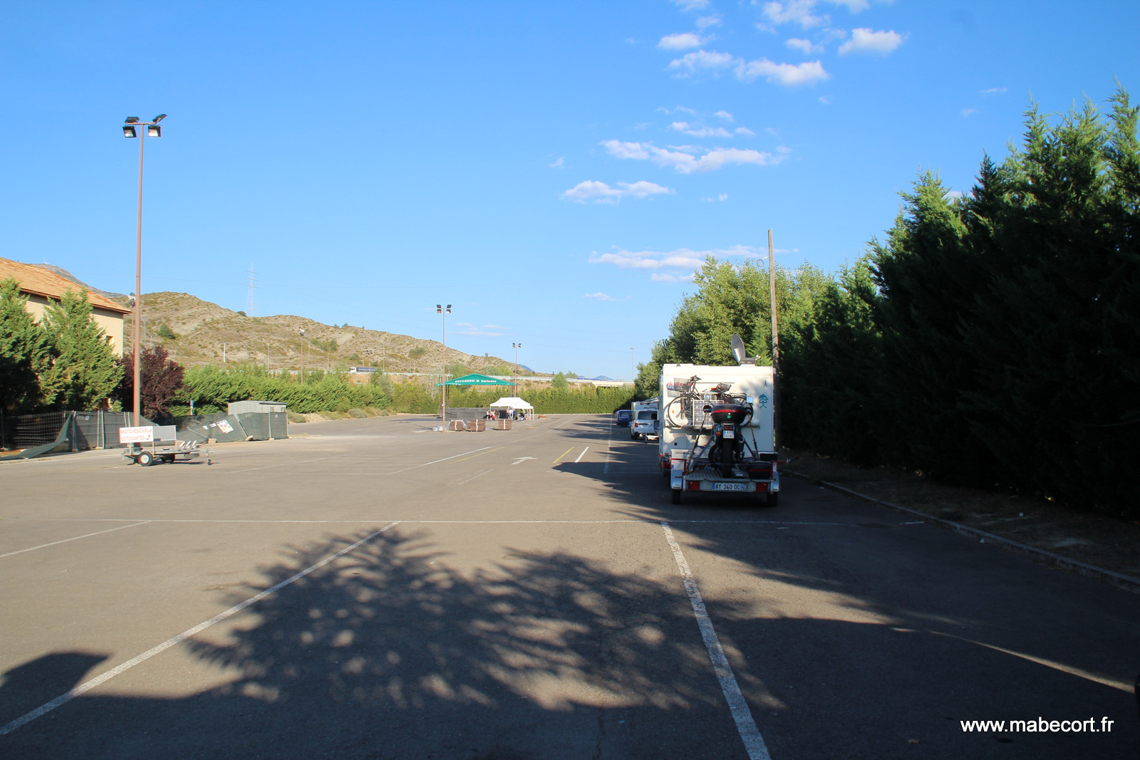 A 10 h 30 nous arrivons à Sabinanigo sur un immense parking. C'est une aire de services pour CCs sur la partie gauche (4 € les 48 h) et un parking gratuit sur la partie droite.