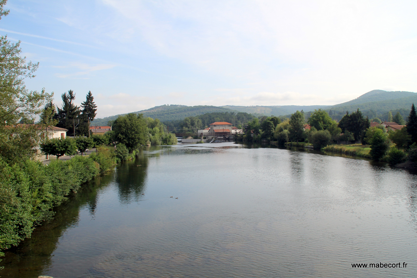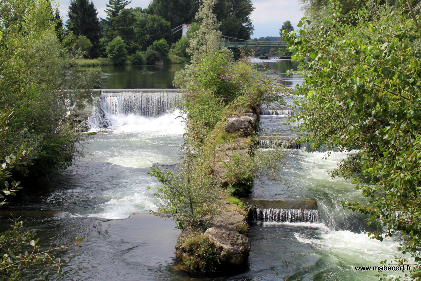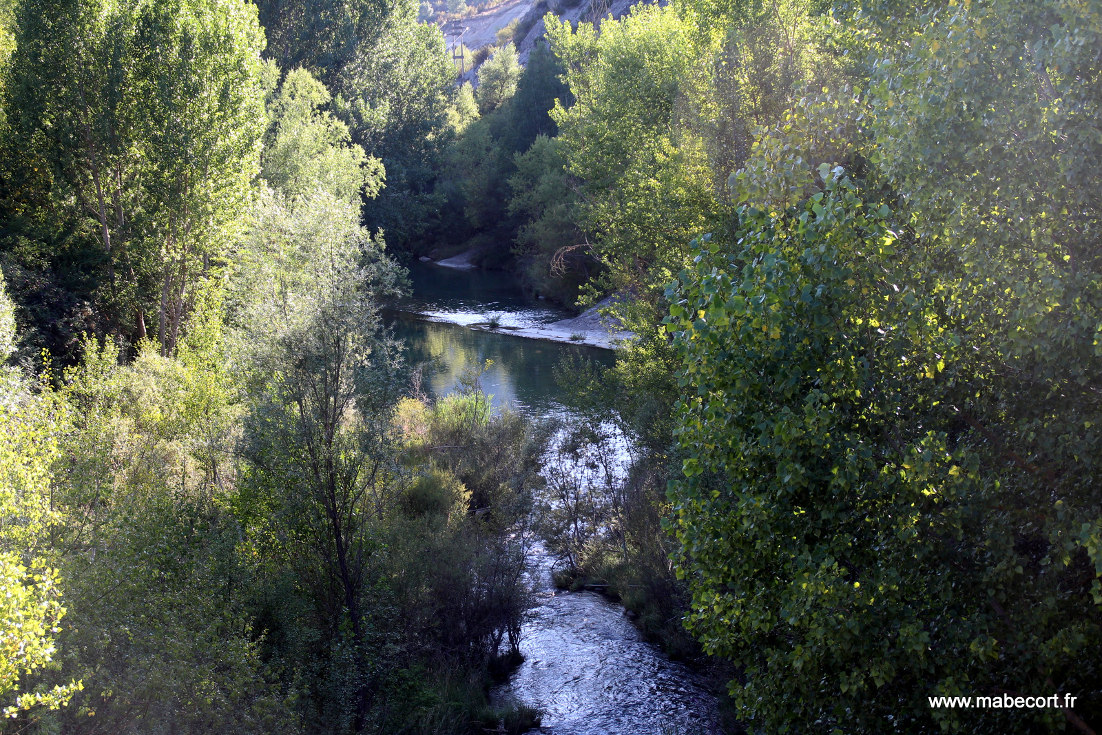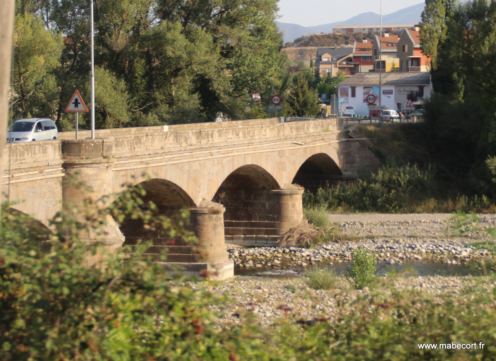 Nous sommes de retour au CC à 20 h 00, il fait encore 31° à l'ombre et nous sommes en nage. Vendredi 18.08.2017. Toujours du beau temps et de la chaleur alors nous décidons de partir à la fraîche. A l'entrée d'un village nous passons sur ce pont sous lequel se trouve plus de cailloux que d'eau.