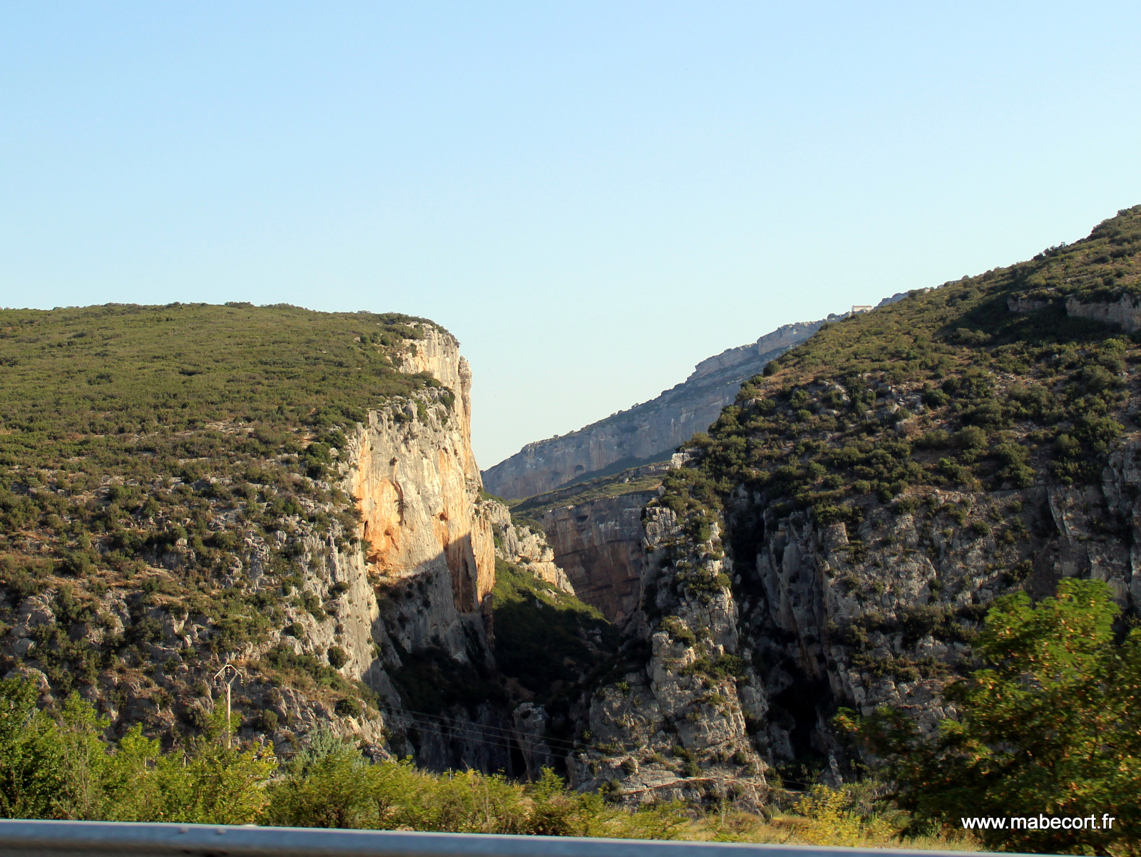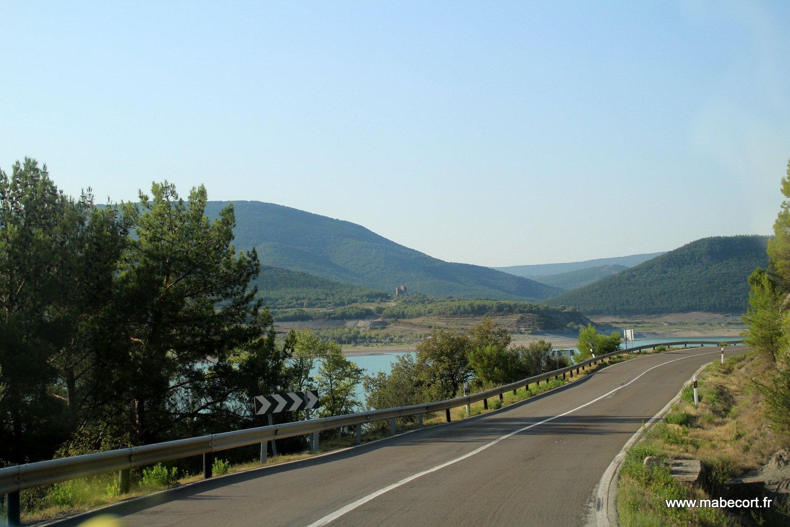 A la sortie d'un virage nous nous retrouvons sur les bords du barrage de Yesa. Là non plus il n'y a pas beaucoup d'eau.