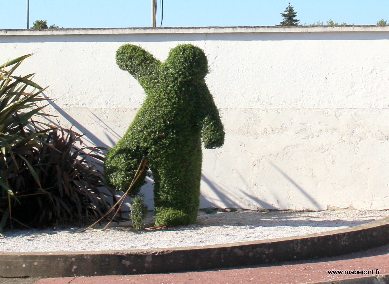 Lundi 14.08.2017. Nous quittons ce beau parking et reprenons la route en direction de Toulouse (70 km). A la sortie de Moissac nous rencontrons l'original du petit bonhomme vert de Cetelem.