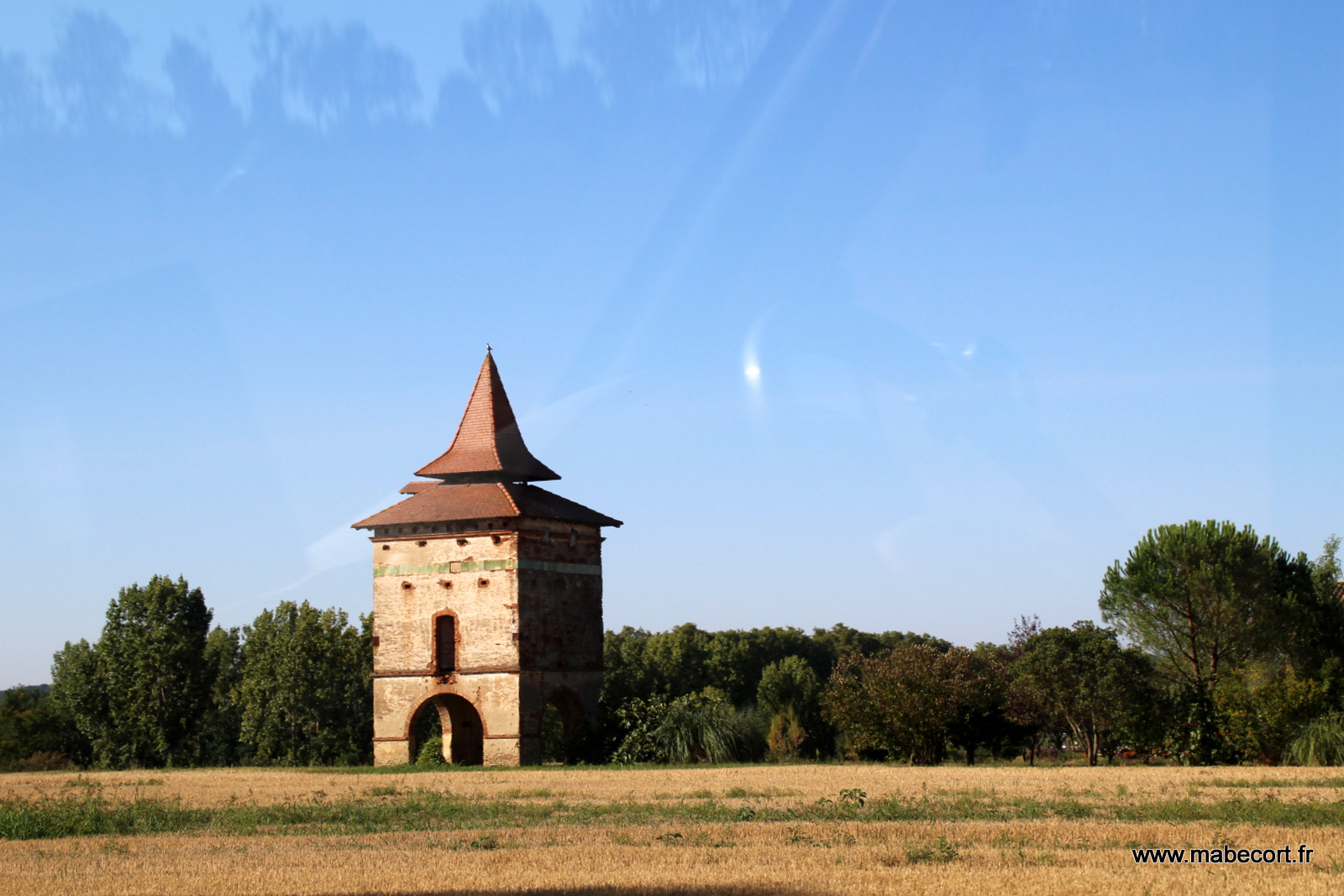 Après Castelsarrasin, au milieu d'un champs, un ancien grenier à grains en très bon état,